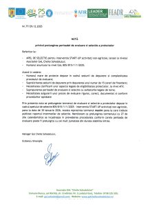 Având în vedere desfășurarea procesului de evaluare a proiectelor depuse în cadrul apelului de selecție pentru Intervenția START-UP activități non-agricole, lansat la nivelul GAL cu numărul 805/815/1/1/2025, vă informăm că termenul maxim prevăzut pentru evaluare și selecție a fost extins până la data de 30.01.2026.